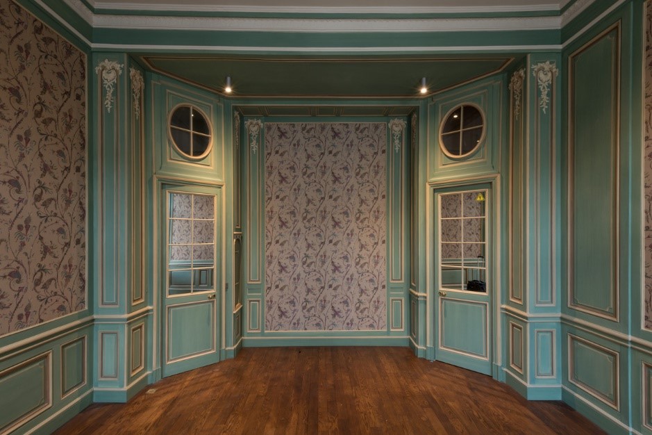 – Restauration des lambris bois existants (dépose, décapage, restitution des éléments et des pièces sculptées manquantes, repose)